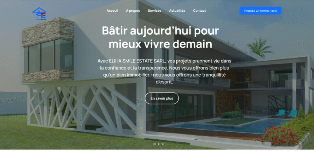 En 2022, à Abidjan, naissait ELIHA SMILE ESTATE SARL avec une vision forte : bâtir avec passion et servir avec intégrité. Mais dans un secteur aussi compétitif que l’immobilier, une vision, aussi noble soit-elle, doit être visible et crédible. L’entreprise avait besoin d’une vitrine moderne, professionnelle et à la hauteur de ses ambitions.